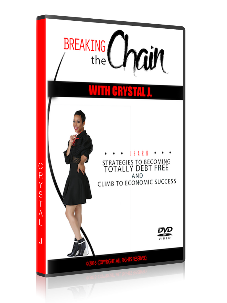 Order your copy of “Breaking The Chain With CJ” DVD and get all the tips you need in this education and informative 60 minute training. Crystal J will give in depth details on tools for debt reduction and budgeting tools that will set you up for financial success.